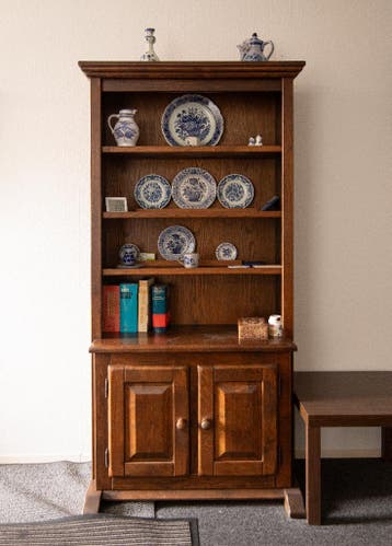 Boekenkast donker eiken met legplanken en gesloten kastdeel met deurtjes. Moet weg vanwege opzeggen flat. Laatste ophaalmoment zaterdagochtend 25 april 2026 zelf demonteren. Inlichtingen onder nr.: 06