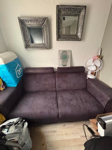 Mooie antraciete bank van suède met verstelbare hoofdsteunen. De bank is nog in perfecte staat en wordt verkocht omdat deze niet meer gebruikt wordt. Een comfortabele toevoeging aan elk interieur.