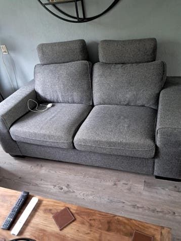 Comfortabele 2.5-Zits bank in een stijlvolle grijs/beige kleur. De bank heeft losse zitkussens en een losse hoofdsteun, wat zorgt voor extra flexibiliteit en comfort. Ideaal voor een gezellige zithoek