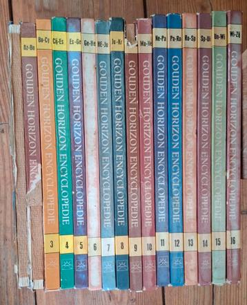 Complete set van de gouden horizon encyclopedie. Deze encyclopedie is een geweldige bron van informatie voor jong en oud. De boeken zijn in gelezen staat, maar nog steeds goed te gebruiken. Een mooie