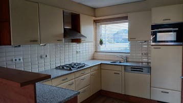 Goed onderhouden keuken in de kleuren maisgeel-warm beuken. De keuken dient zelf gedemonteerd en opgehaald te worden in week 19 (8 t/m 10 mei). De keuken is voorzien van de volgende apparatuur: - vaat