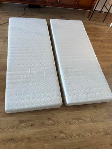 Gratis af te halen: twee matrassen, een topper en twee boxsprings. Deze zijn alleen vandaag op te halen. De boksprings zijn 80 cm breed en 200 cm lang. In ruil hiervoor dient het bedframe ook meegenom