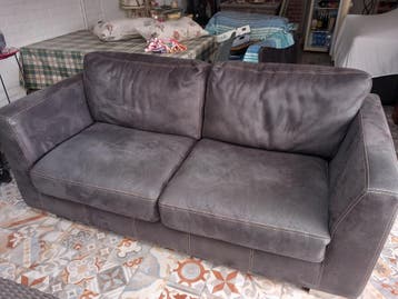 Mooi antracietgrijs bankstel, bestaande uit een ruime 3-zits bank en een comfortabele 2-zits bank. Ideaal voor een gezellige woonkamer. De banken zijn gebruikt, maar nog in goede staat en bieden veel