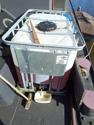400 liter oude diesel, om te gebruiken in een kachel hebben we over op een oud schip