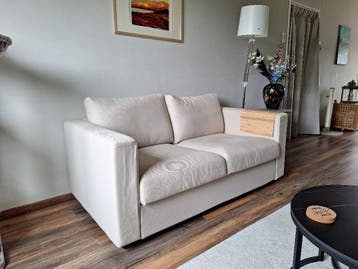 Jaar geleden gekocht bij de ikea. Ziet er nog heel mooi uit. Past prima in een kleinere woonkamer. Bank mag dus per direct weg. Bank gekocht voor 439 euro. Die kring die je op de linkerzitting ziet is