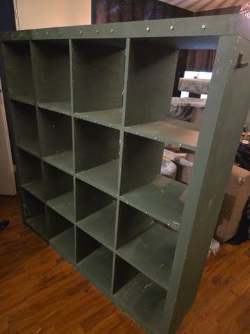 Kallax kast met 16 vakken - opknapper voor wie tijd en zin heeft in schuren en verven kan dit nog als prima kast dienen. Verder helemaal in orde, alle schroeven ed aanwezig. Kast is uit elkaar gehaald