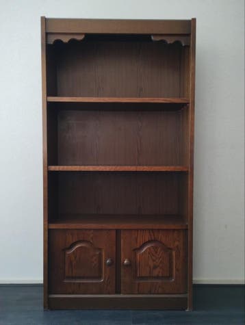 Gratis af te halen op dinsdagochtend in dedemsvaart: een nette boekenkast met de afmetingen 83x28x159,5 cm (breedte x diepte x hoogte). De kast heeft open planken en twee deurtjes aan de onderkant, id