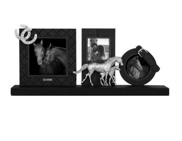 Prachtige happy house fotolijst in drieluik uitvoering met paardenthema. De lijst is zwart van kleur en wordt geleverd in de originele doos, dus helemaal nieuw en ongebruikt. Perfect voor paardenliefh