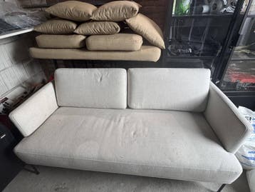 Deze tweezitter is met zijn lengte van 166 cm ideaal voor kleinere ruimtes! Hij is gebruikt, daarom is hij gratis af te halen. Totaal: b 166 cm, h 79 cm, d 85 cm zitvlak: b 150 cm, h 46 cm zitdiepte m