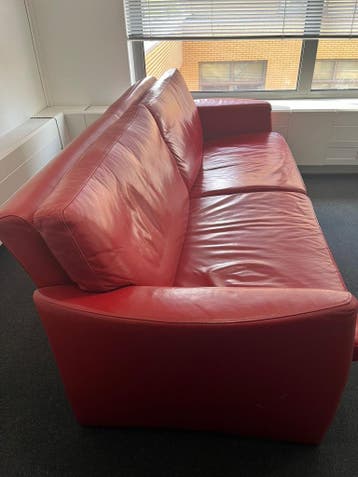 Gratis af te halen: rode leren 2-zitsbank wegens verhuizing. Nette rode leren bank voor woonkamer, kantoor of wachtruimte. De bank zit nog prima en verkeert in gebruikte maar nette staat. Zie foto'
