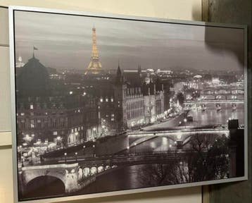 Mooie grote foto van parijs met lijst, gekocht bij ikea. Afmetingen zijn circa 100cm x 140cm. Gratis op te halen.