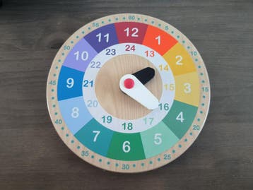 Deze kleurrijke klok van ikea is ideaal voor kinderen om op een speelse manier te leren klokkijken. De klok heeft duidelijke cijfers en wijzers, en is in goede staat.