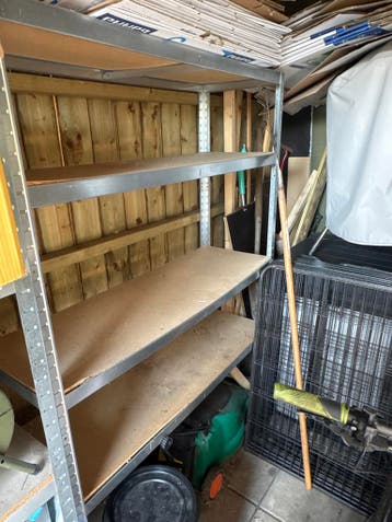 Robuuste stellingkast van 1.20 Meter lang. Gratis. Deze week ophalen. Zelf uit elkaar halen. Paar planken zijn krom maar kun je nog wel gebruiken
