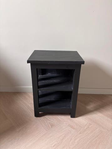 Mooi zwart open nachtkastje in prima staat. Ideaal voor naast het bed of als bijzettafel. Biedt handige opbergruimte met open vakken.