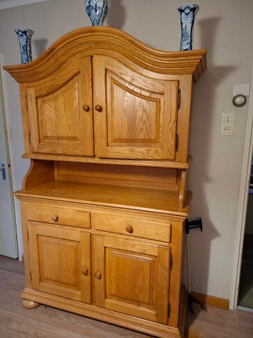 Mooie en stevige eiken buffetkast, bestaande uit twee delen. De kast is gratis af te halen. Ideaal voor wie op zoek is naar een functionele en sfeervolle toevoeging aan het interieur. Br 1.30 , Hoogte