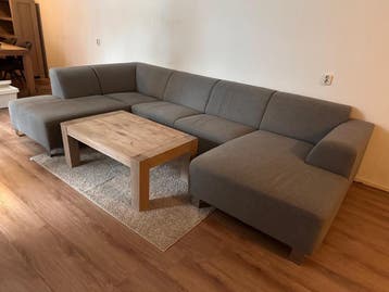 Gratis af te halen: comfortabele en ruime hoekbank in een neutrale grijze stof. De bank is gebruikt. Ideaal voor een starterswoning, studentenkamer of als extra zitplek. De bank is direct beschikbaar