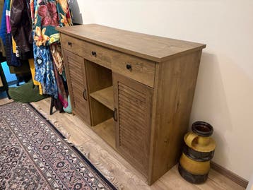No stains or signs of usage, some hinges are loose, but can be fixed, middle door is deattached but included.