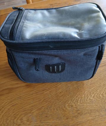 Fietstasje voor aan het stuur grijs.gebruikt maar is nog heel