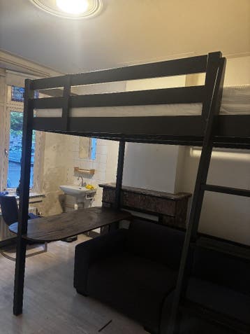Hoogslaper met houten tafel 152 cm breed 214 cm lang 214 cm hoog inclusief matras en zelf demonteren