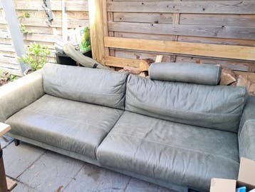 Gratis aangeboden! Mooie groene lederen 4-zits bank van het merk hennes&hazel. De bank is comfortabel en biedt voldoende ruimte voor het hele gezin. Ideaal voor een gezellige woonkamer, studentenh