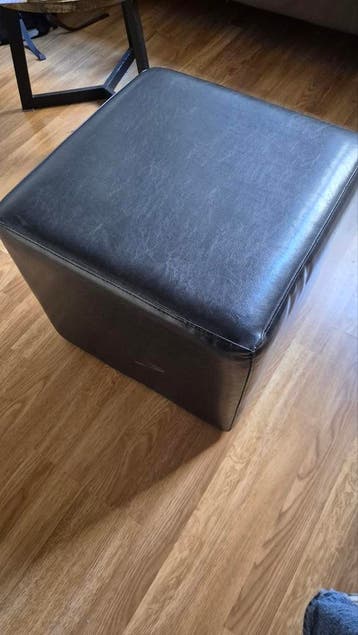 Zwarte leren poef. Echt leer. Ophalen voor 1 mei