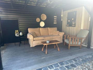 Wegens andere indeling van onze tuin komt dit leuke vintage bankje beschikbaar. Het is een 3 zits ik de kleur camel de staat van de bank is heel erg goed met een stevige zit en schoon! Niet doorgezakt