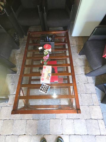 Mooie salontafel van 140x80x45 cm (hoogte). Voorzien van een geslepen glasplaat die krasvrij is. Ideaal voor in een mancave. Gratis op te halen.