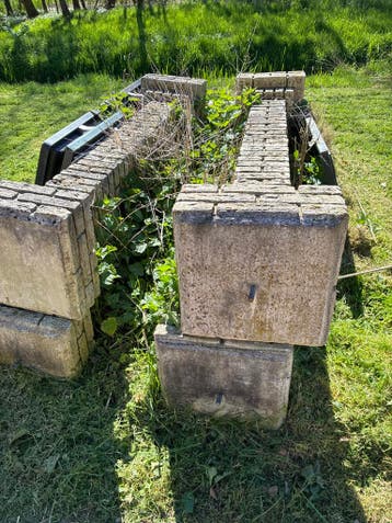 Gratis af te halen :4 robuuste betonnen pilaren. Deze pilaren zijn erg zwaar en daardoor zeer stabiel en duurzaam. Ideaal voor diverse constructie- of decoratieve doeleinden in de tuin of rondom het h