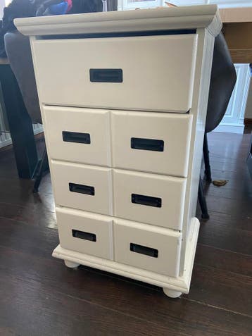 Gratis ophalen. Houten kastje met 4 lades in ral 9016.