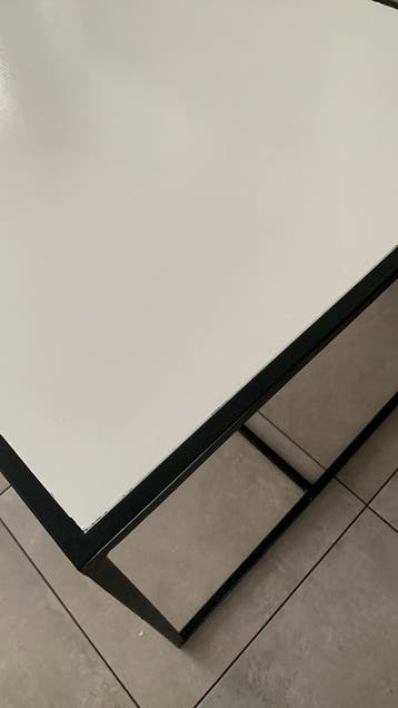 Moet voor zaterdag weg!!! Stijlvolle eetkamertafel met een strak wit blad en een modern zwart metalen onderstel. Deze tafel is perfect voor een eigentijds interieur en biedt voldoende ruimte voor geze