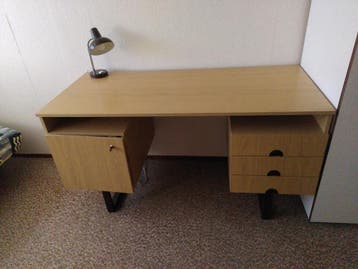 Handig bureautje met kastje en laatjes. 1.35 Bij 0.60 En hoogte 0.73
