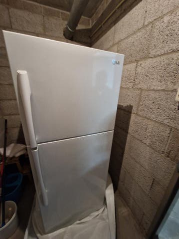 Lg koelkast met vriesvak. De koelkast werkt goed. Heeft no frost functie. Rond 160/165 hoog. Heeft een tijd in de berging opgeslagen gestaan, daarom moet hij nog schoongemaakt worden. Moet zo snel mog