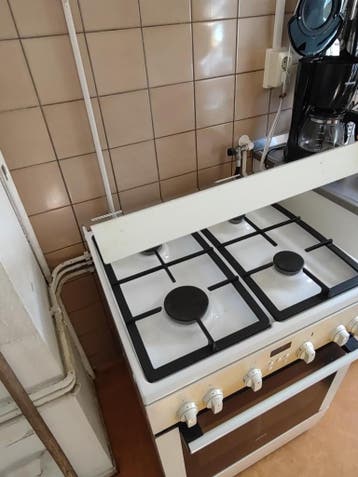 Modern, helderwit gasfornuis, zonder gebreken, en vandaag op te halen.