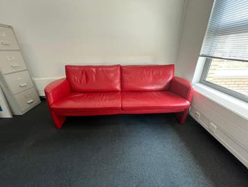 Gratis af te halen: rode leren 2-zitsbank wegens verhuizing. Nette rode leren bank voor woonkamer, kantoor of wachtruimte. De bank zit nog prima en verkeert in gebruikte maar nette staat. Zie foto'