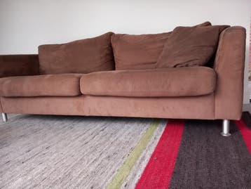 Gratis af te halen bank van suède-look stof breedte 2.10 M e-persoons hij moet nu weg ivm verbouwing we roken niet en hebben geen huisdieren