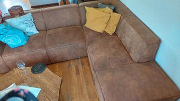 Hele mooie in goede staat hoekbank kan in 2 delen. Nieuwprijs 950 euro. Breed 90cm lengte 215 (1 gedeelte) in geheel 270