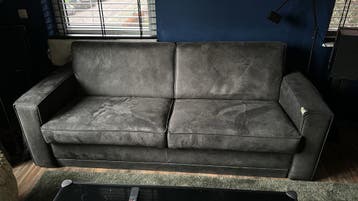 Met spoed moet deze weg graag dit weekend opgehaald worden comfortabele grijze tweepersoonsbank te koop. De bank is gebruikt en heeft lichte slijtage aan de armleuning, zoals te zien op de foto's.