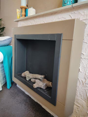 Gel haard inclusief keramische haardblokken. Houten ombouw, metalen binnenhaard, 3 (lege) gelblikken. De ombouw is eenvoudig aan de wand te monteren. De haardblokken kunnen tijdens het branden gewoon