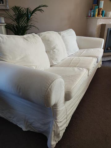 Gratis af te halen een 3-zits stoffen bank. Je krijgt er een extra set hoezen in dezelfde kleur bij.