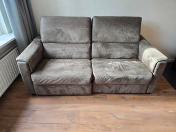 Comfortabele 2-zitsbank van van donzel, uitgevoerd in een stijlvolle grijze stof. De bank is voorzien van een handige relaxfunctie voor optimaal zitcomfort. Nog 2 jaar vlekgarantie aanwezig, wat zorgt
