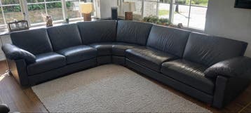 Mooie lederen hoekbank in zeer nette staat. Deze ruime bank heeft een afmeting van 3.20 Meter bij 2.80 Meter en biedt veel zitruimte. Alle kussens zijn los en de bank bestaat uit 3 delen, wat het tran