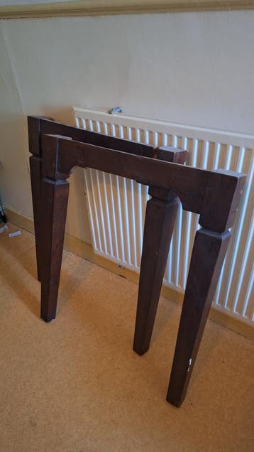 Set van 4 stevige, gebruikte tafelpoten. Ideaal voor een doe-het-zelf project of als reserveonderdelen. Ze zijn gratis af te halen.