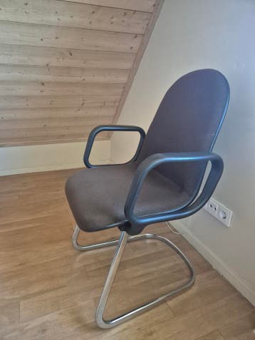 Comfortabele bruine bureaustoel zonder wieltjes, ideaal voor een vaste werkplek of als extra zitplaats. Gebruikt, maar nog prima voor thuiswerken of op kantoor.