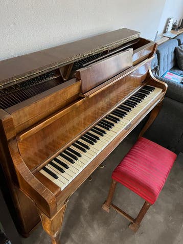 Te koop: een prachtige august forster piano. Dit instrument is zwaar en van hoge kwaliteit, ideaal voor de serieuze pianist of als stijlvol meubelstuk. Af te halen in ruil voor twee slagroomtaarten va