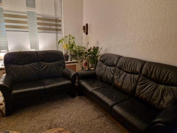 Gratis af te halen in nieuwstadt: een comfortabele leren 2-zits en 3-zitsbank. De banken vertonen lichte gebruikssporen, waaronder enkele kattenkrabjes. Dit is m'n aan de zijkant.... Ideaal voor w