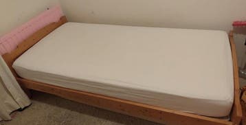 Zat in een kinderkamer dus wat gebruikssporen maar kan nog prima mee. Slaapt lekker! Gaat weg want de kinderen krijgen een stapelbed. Gratis op te halen. Zonder matras.