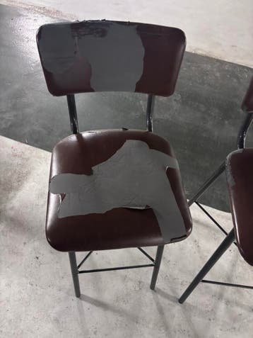 Twee barkrukken gratis af te halen. De zittingen van imitatieleer zijn beschadigd (afgebladderd), zie foto's. Het frame is nog in goede staat. Ideaal voor iemand die handig is en de zittingen kan