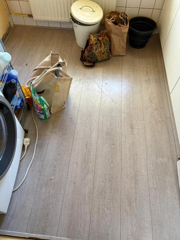 Vloer gaat eruit op de 28ste. Moet voor de 30ste worden opgehaald, anders vuilstort. Alles moet in één keer mee. Tussen 40-50m2 mooie, lichte laminaatvloer in een neutrale grijstint. Merendeel is in m