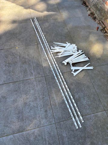 Complete set rek onderdelen, inclusief staanders en een ruime hoeveelheid dragers. Ideaal voor het creëren van een op maat gemaakt opbergsysteem in uw garage, schuur of berging. De onderdelen zijn geb