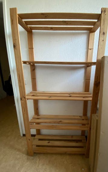 Houten opbergrek met 5 legvlakken, breed 84,5cm, , hoog 170 cm., Diep 30 cm.